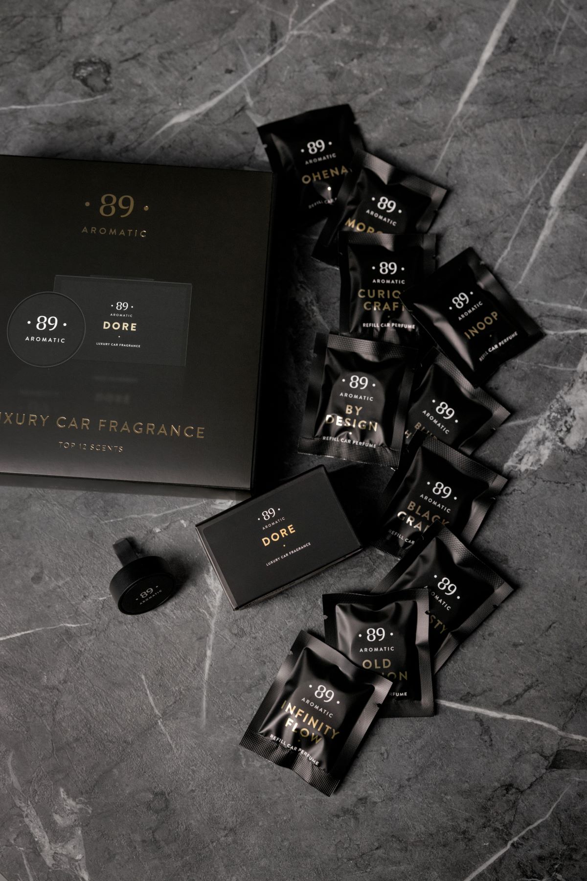 En exklusiv doftkollektion skapad för att förgylla dina resor året runt. Detta lyxiga set innehåller en återanvändbar metallhållare och 12 av Aromatic •89• mest populära dofter – perfekta för dig som vill variera bilens atmosfär och uppleva något nytt varje månad.